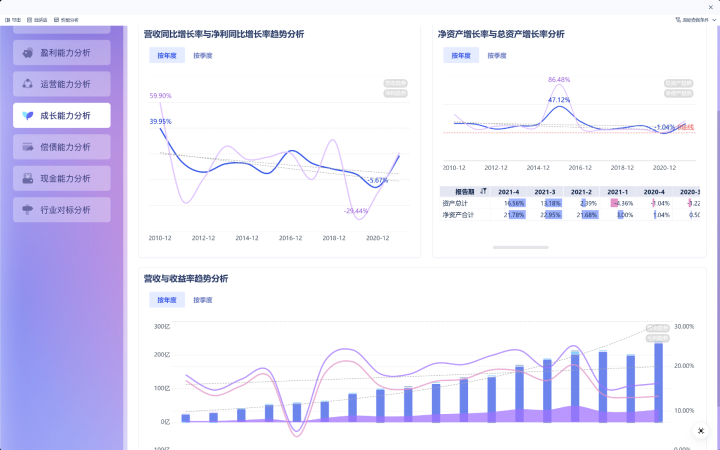 如果营收增长10%,净利润只增长5%,说明成本控制得不好;如果净利润增长比营收快,说明运营效率在提升。