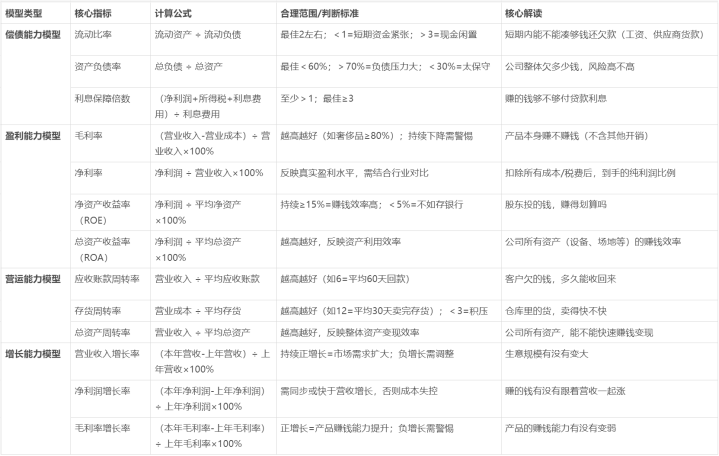 财务分析模型本质就是整理数据的固定套路,把零散的资产、负债、收入、成本数据,按特定逻辑分类、计算、对比,能快速找到关键问题:是成本太高,还是资金周转太慢,或是赚钱效率太低。
