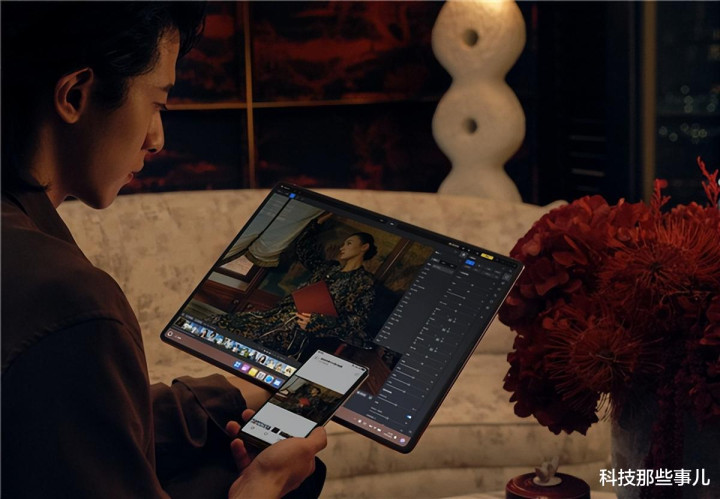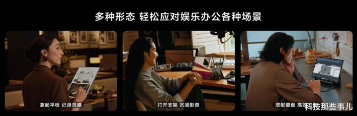 在展开时,华为鸿蒙折叠电脑MateBook Fold 非凡大师提供18英寸巨幕,用户可以进行进行艺术鉴赏、琴谱查看、方案展示。